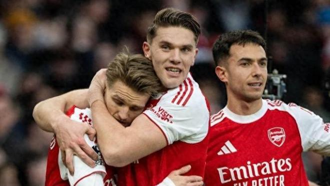 北京时间12月27日晚,阿森纳在酋长球场2-1击败布莱顿,成功夺回英超积分榜榜首。就在几个小时前,曼城凭借胜利短暂登顶,但枪手很快做出回应,在主场拿下这场关键比赛,不仅延续了争冠势头,还实现了英超主场六连胜。本赛季早些时候,阿森纳在联赛杯四分之一决赛中通过点球大战淘汰了水晶宫。主帅阿尔特塔很快将球队的注意力转向了联赛。面对布莱顿强劲的球风和灵活的战术,球队从一开始就表现出了强烈的求胜欲望。第14分钟,阿森纳率先打破僵局:定位球进攻中,德克兰·赖斯头球攻门,布卡约·萨卡回应。马丁·厄德高在禁区外一脚远射破门,这是他本赛季的第一个英超进球在。取得领先后,阿森纳紧紧控制上半场节奏,持续施压。马丁·祖比门迪的精彩后脚跟传球甚至迫使布莱顿门将巴特·维尔布鲁根做出精彩扑救。换边后,枪手再次利用定位球扩大领先优势。第52分钟,赖斯开出角球,客队球员乔治尼奥·鲁特尔在门前解围时意外打进乌龙球,比分2-0。但布莱顿并没有放弃。第64分钟,迭戈·戈麦斯巧妙补射破门,为客队获胜,比赛悬念回归。最后阶段,布莱顿紧逼并展开围攻。好在阿森纳门将大卫·拉亚在关键时刻做出勇敢扑救,保住了球门完好无损,帮助球队惊险卫冕了胜利。凭借这场大胆的胜利,阿森纳重返英超榜首,继续激烈的冠军争夺战与曼城。
